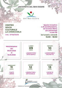 Il nostro obiettivo è di stare bene insieme (Ben-Essere), a tutte le età, e, per questo, organizziamo iniziative per tutte le fasce: bambini, giovani e adolescenti, adulti, terza età.